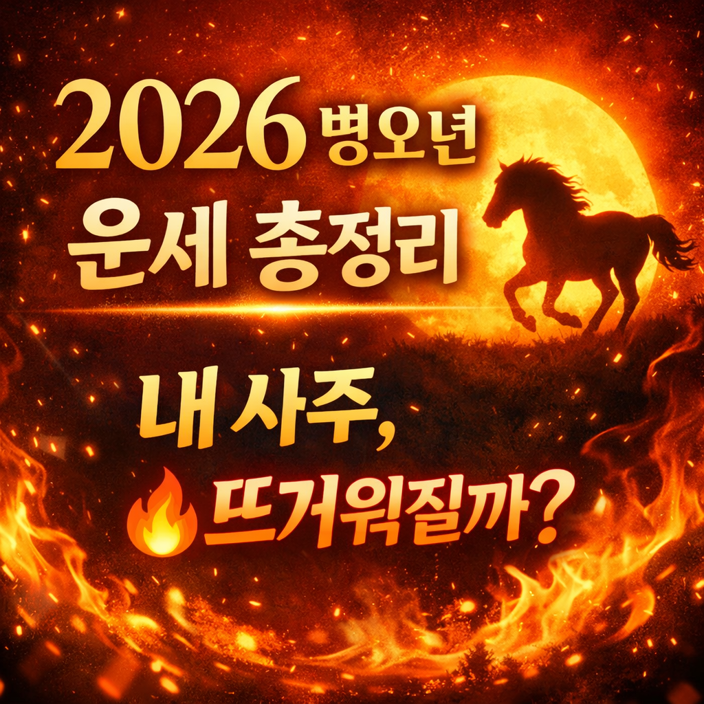 2025년 을사년이 마무리되며, 많은 사람들이 다가올 2026년 병오년(丙午年)의 운세 흐름에 관심을 갖고 있습니다. 특히 사주(四柱)에 따라 병오년의 ‘불(火)’ 기운이 어떤 영향을 줄지 궁금해하는 분들이 많습니다.